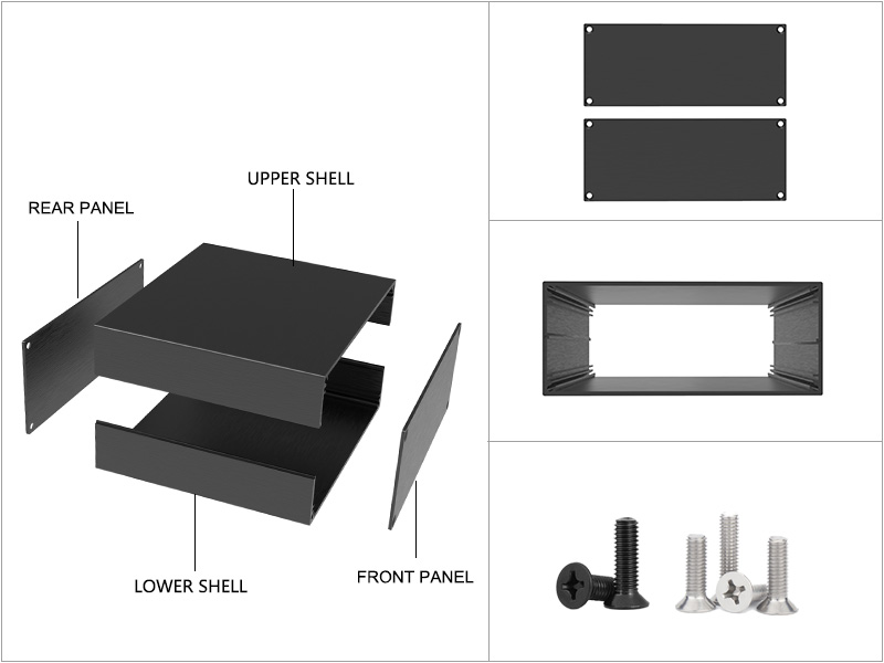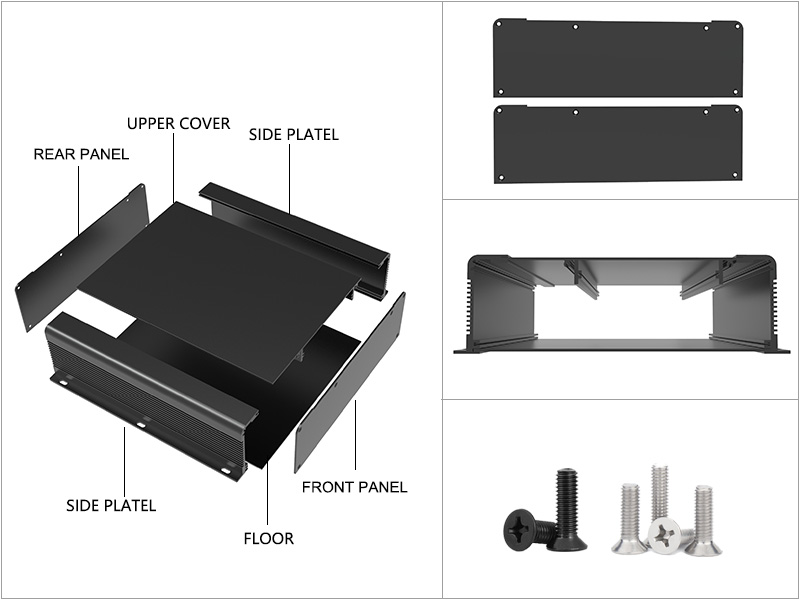 The connection methods include screw fixation between the shell and the panel for both profile and waterproof shells. This provides stability and allows for easy disassembly, facilitating future maintenance and replacement. The 19-inch chassis typically uses corner brackets and screws to connect the front and rear panels, as well as screws to fix the shell and cover, enhancing structural stability.