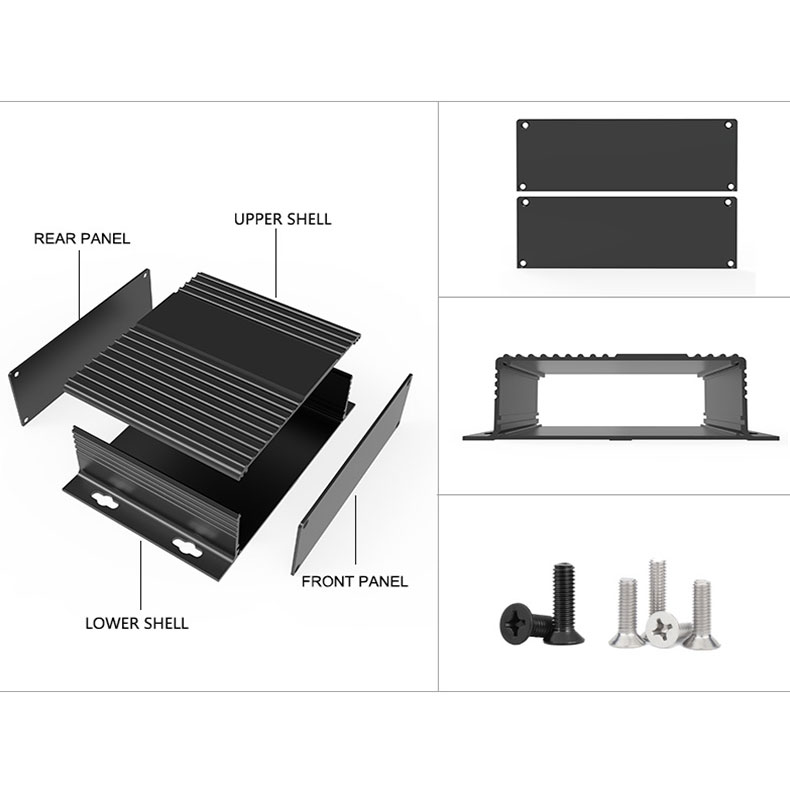 Brand : Pumay External dimensions: 147*41-L mm / 5.78'' x 1.61''x L '' ( W x H x L ) Internal dimensions: as drawing Stock Length : 100 mm Stock Color :Silver / Black Structure : Split Package weight: near 0.3 KG Unit Price : 5-15 USD