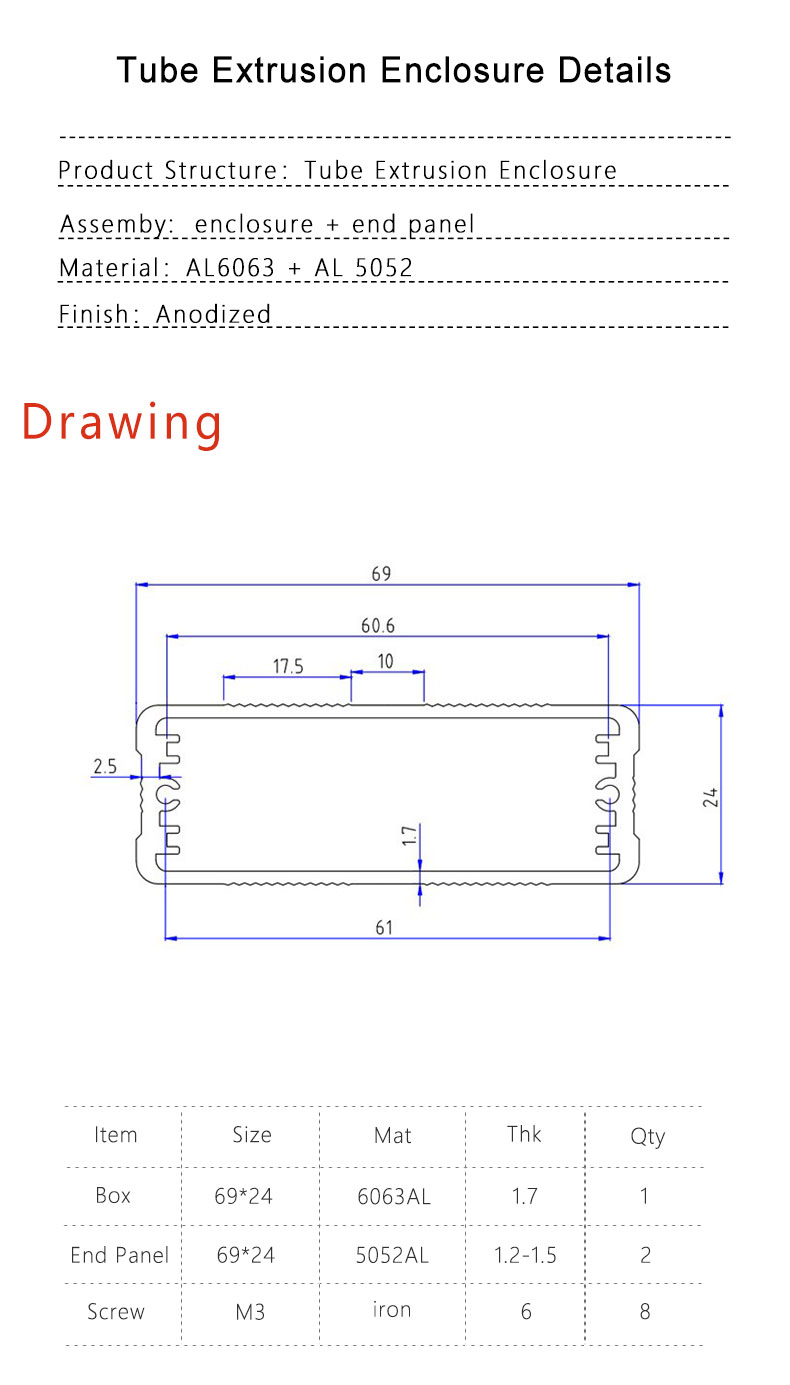 69*24Aluminum project box of aluminum anodized with custom service