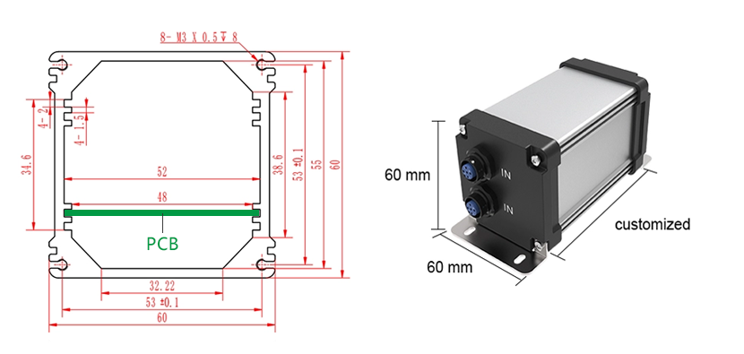 CUSTOMIZED COLOR Aluminum enclosure color is usually black, white, gray, blue, and gold, To change the color of the casing, the aluminum body is made using a different color anodizing. Requirements change color when required to provide color.